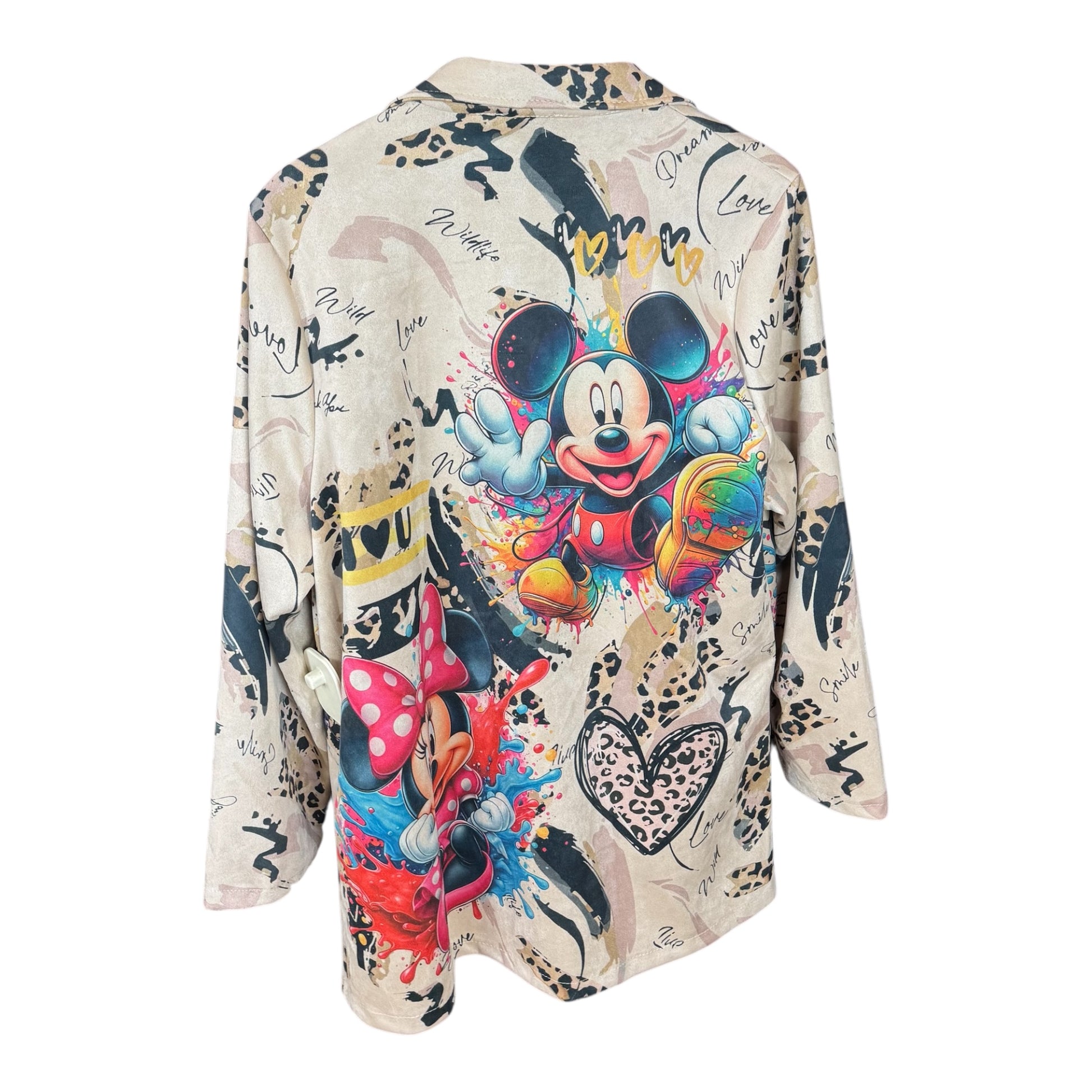 Magia y estilo en una sola prenda 💫. La americana Disney combina el corte clásico y elegante de una blazer con detalles únicos inspirados en los personajes más icónicos 🐭✨. Perfecta para darle un aire divertido y original a tus looks, ya sea con jeans 👖 para un outfit casual o con pantalones de vestir para un toque más chic.
