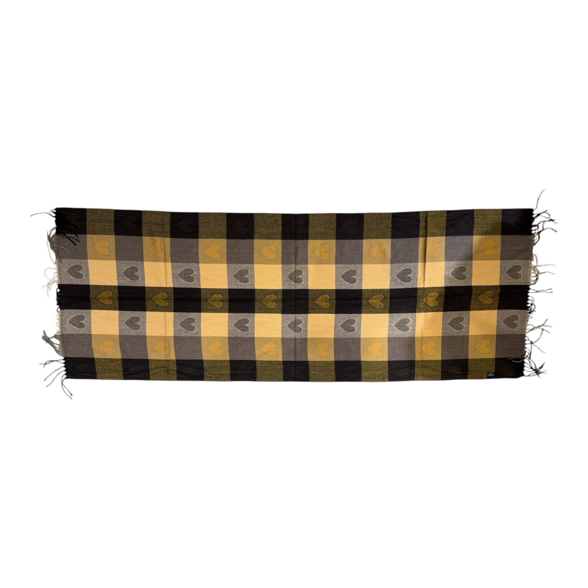 Con su diseño de cuadros clásicos y corazones tejidos, es el complemento perfecto para darle un toque especial a tus looks de invierno.