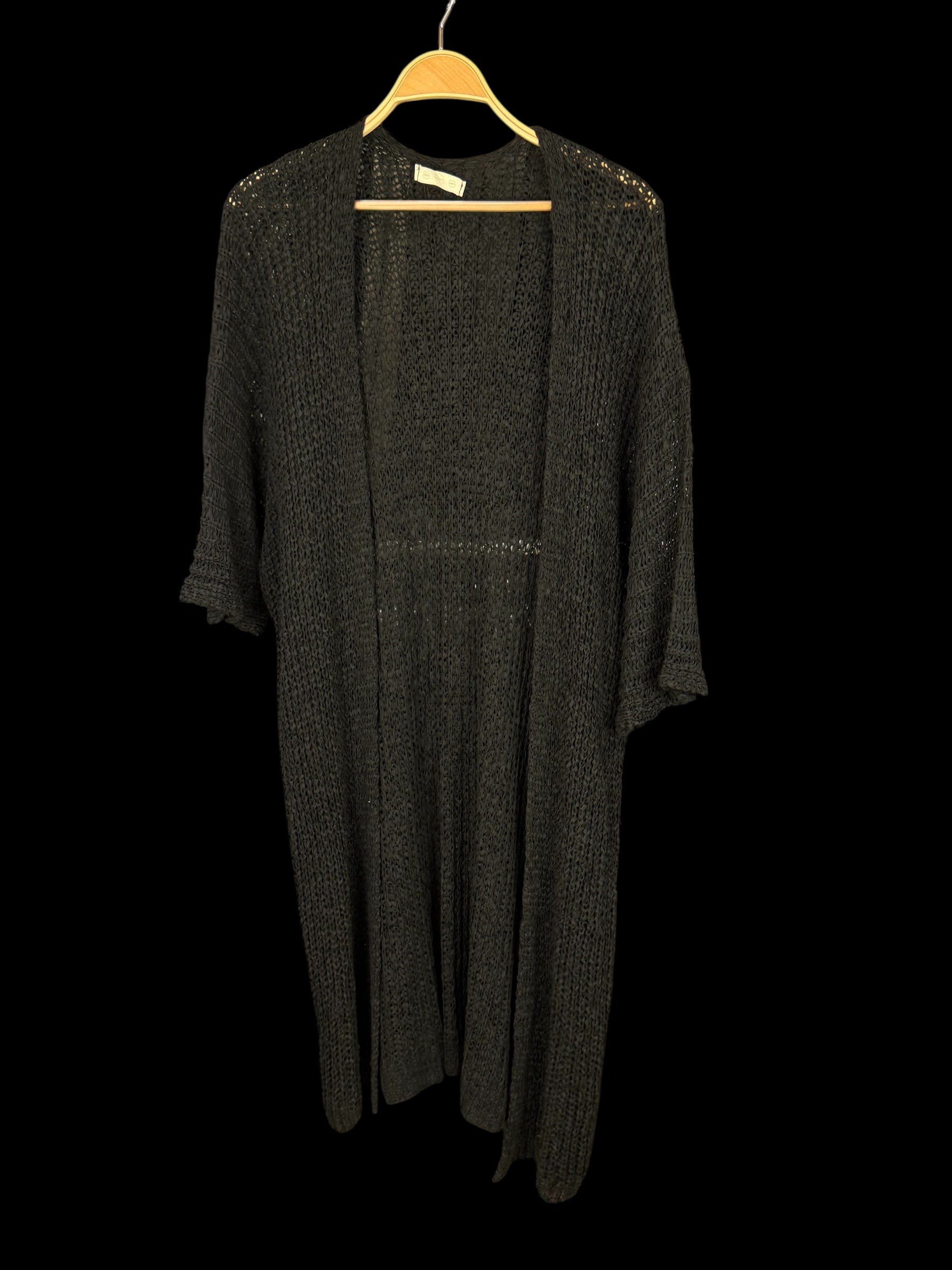 Chaqueta larga de tejido tipo rejilla suave y con mucho estilo. Perfecta para combinar con todos tus looks de otoño 🍂 y darle un toque moderno a cualquier outfit.