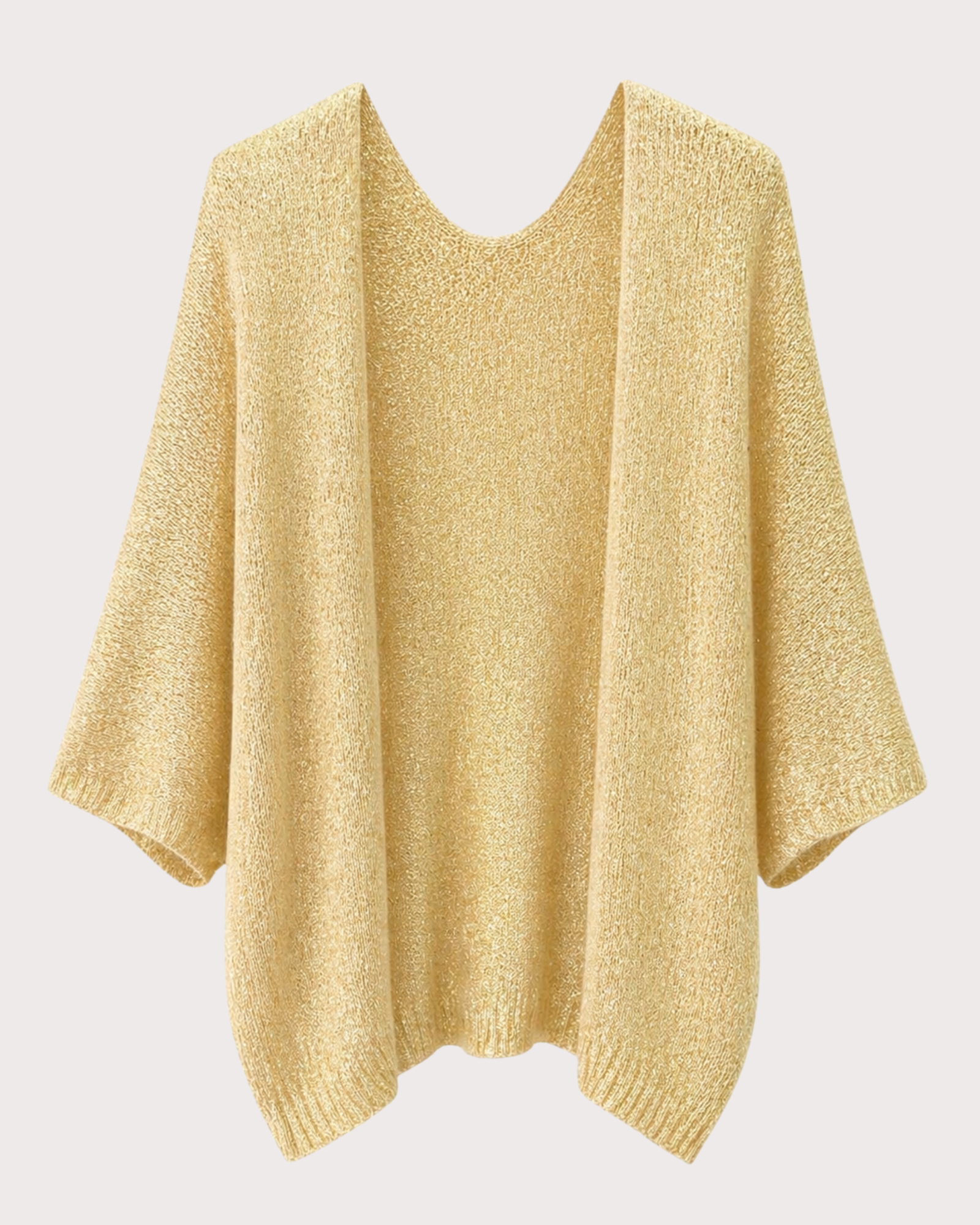 Chaqueta de rejilla en tono beige con hilo dorado ✨, ligera y con caída fluida.