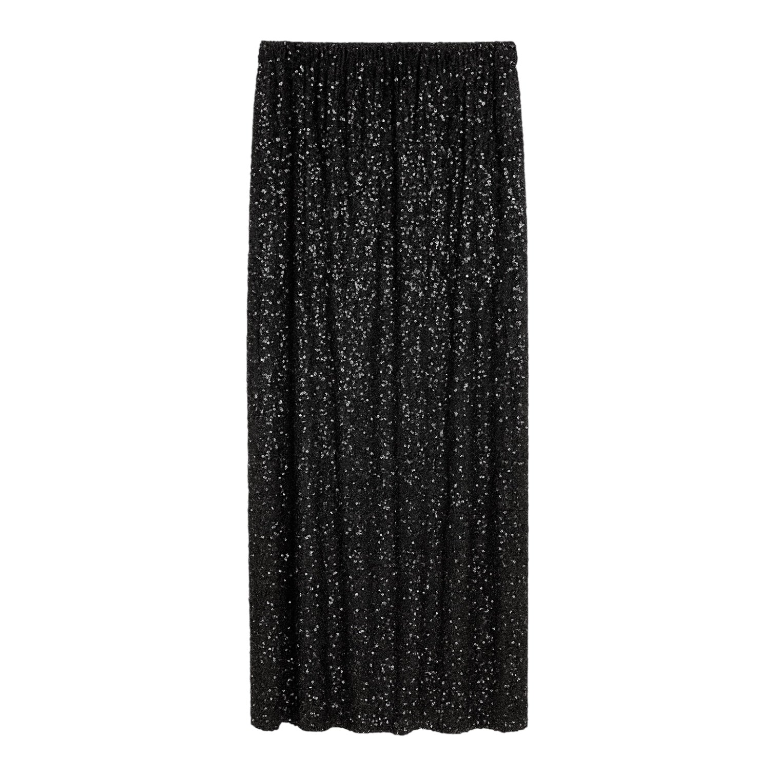 Brilla sin esfuerzo con esta falda de lentejuelas ideal para tus eventos y noches especiales. Su diseño luminoso capta la luz desde cualquier ángulo, mientras que el tejido suave y flexible se adapta cómodamente a tus curvas 💖.