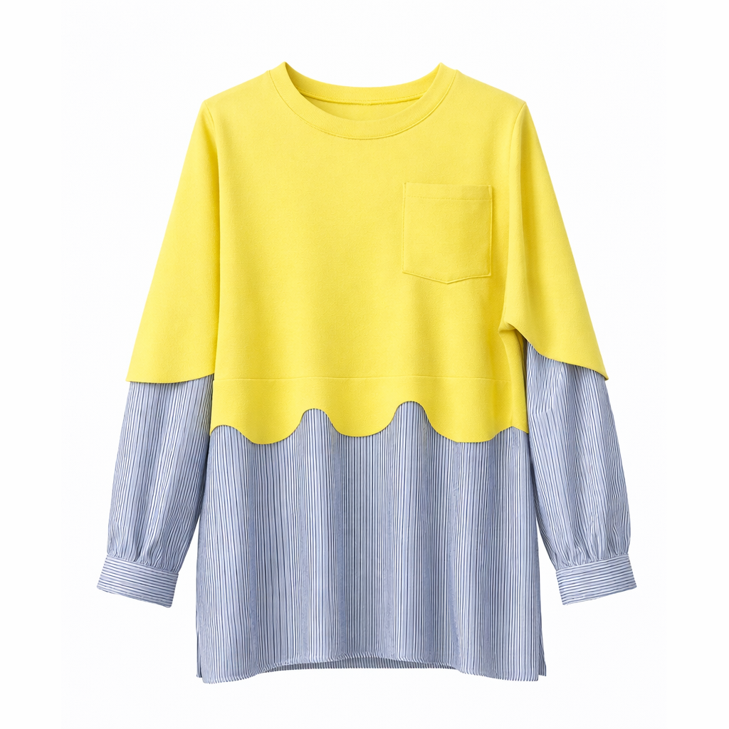 Jersey combinado en azul cielo con efecto camisa plisada en la parte inferior y mangas.