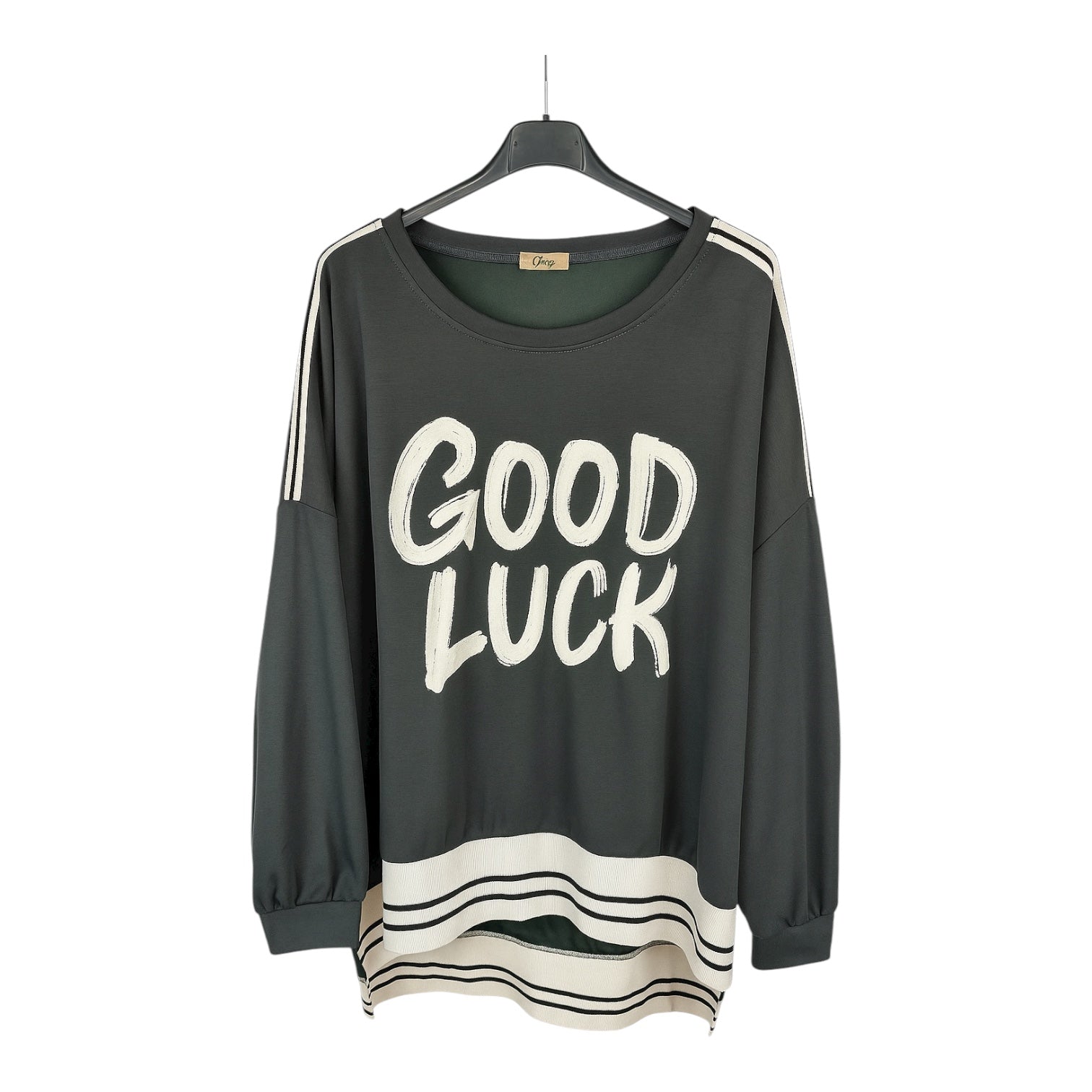 Dale suerte (y estilo) a tu look con la jersey Good Luck 💫. Con su estampado animal print y el detalle del mensaje “GOOD LUCK” en el pecho, aporta un toque moderno, atrevido y lleno de actitud.