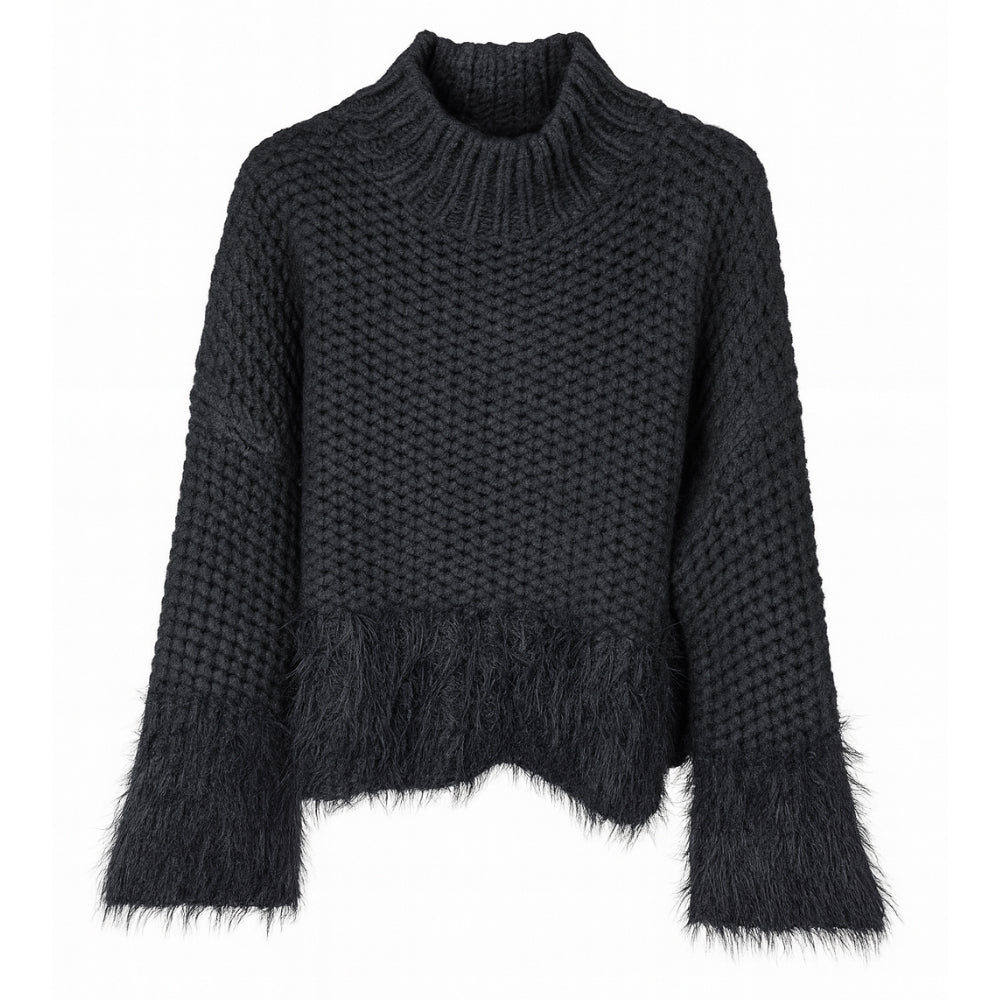 El Jersey Punto Pelito Negro es la prenda perfecta para elevar tus looks de invierno con un toque sofisticado.