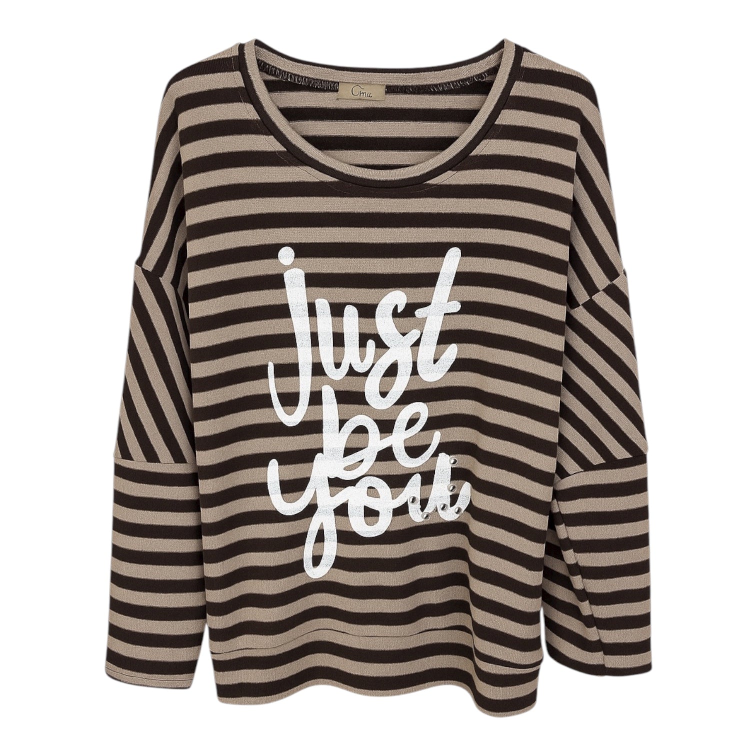 El Jersey You es la combinación perfecta entre comodidad y actitud 💫. Con su estampado de rayas horizontales y la frase inspiradora “Just be you” en el centro, transmite un mensaje claro: sé tú misma.