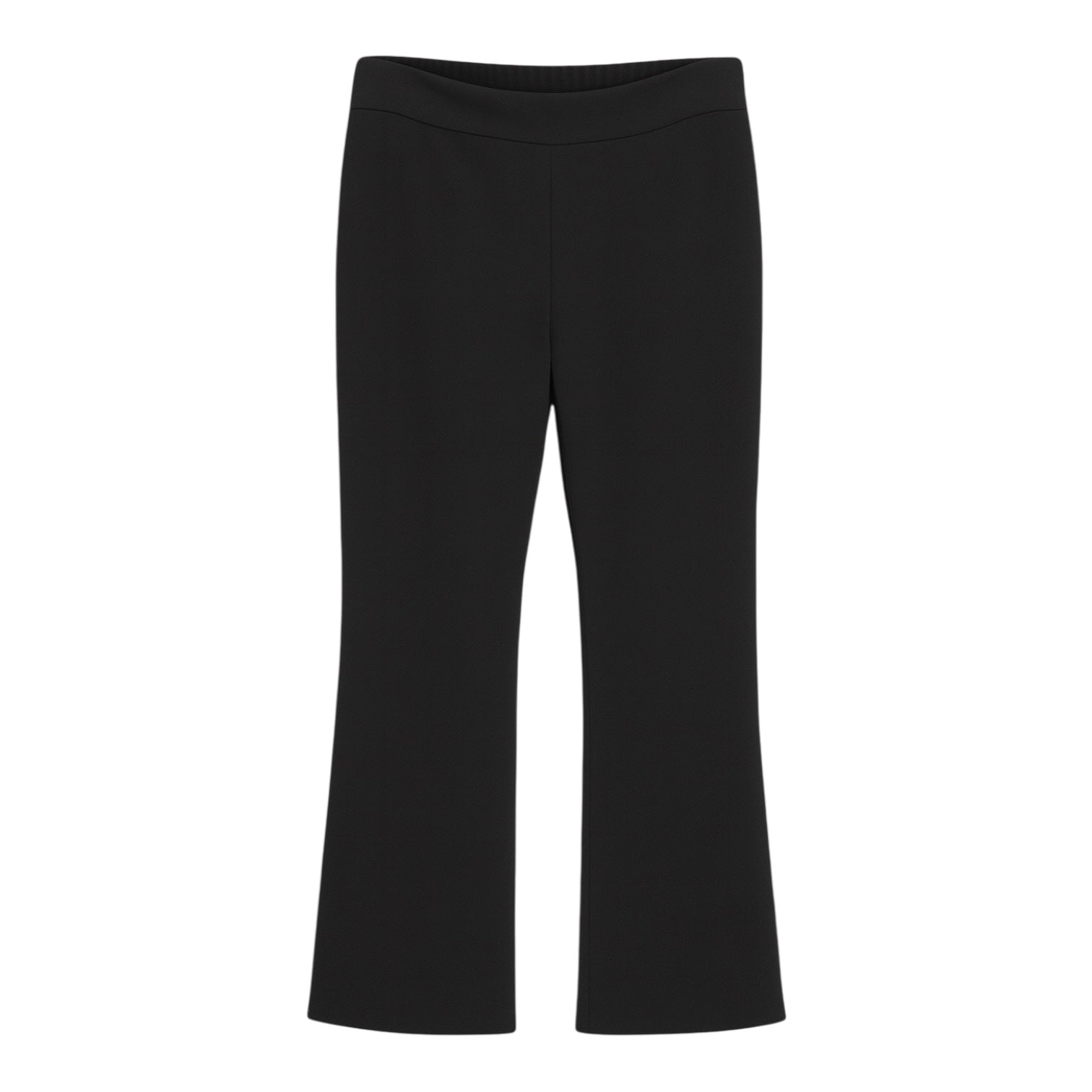 Pantalón de punto con cintura lisa y tiro medio, de caída recta que se abre suavemente en el bajo.