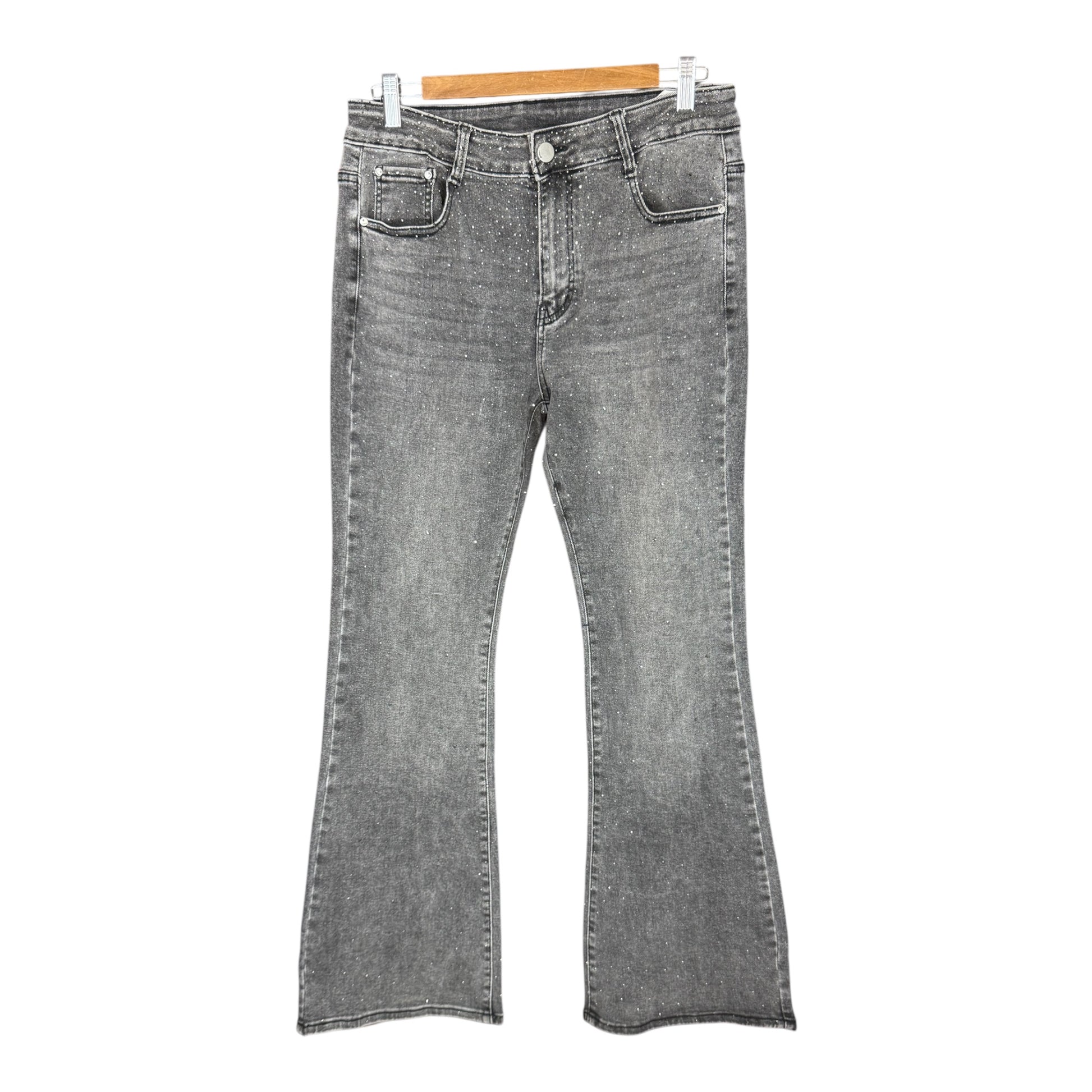 Un vaquero diferente que marca la diferencia 😍. Acampanado, decorado con brillos sutiles y elegantes que iluminan el look sin perder la esencia casual. Un básico renovado que aporta estilo y comodidad para cualquier ocasión.