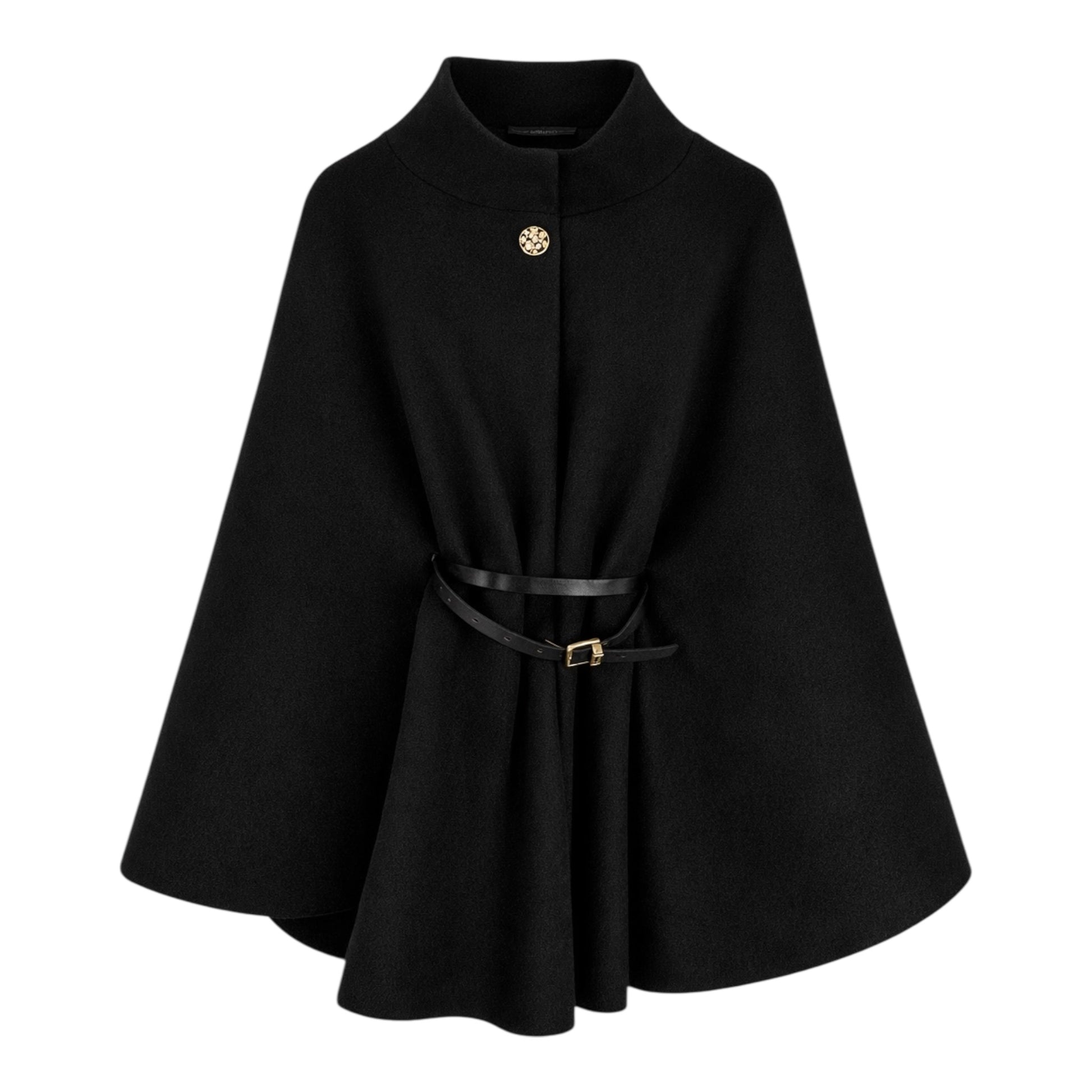 Poncho elegante y sofisticado, ideal para elevar cualquier look de otoño e invierno 🖤. Su diseño tipo capa aporta un caído fluido y favorecedor, mientras que el cinturón ajustable permite marcar la silueta según tu estilo. El botón joya en el cuello añade un toque especial y femenino, perfecto tanto para ocasiones más arregladas como para el día a día. Una prenda versátil, cómoda y con mucha presencia ✨.