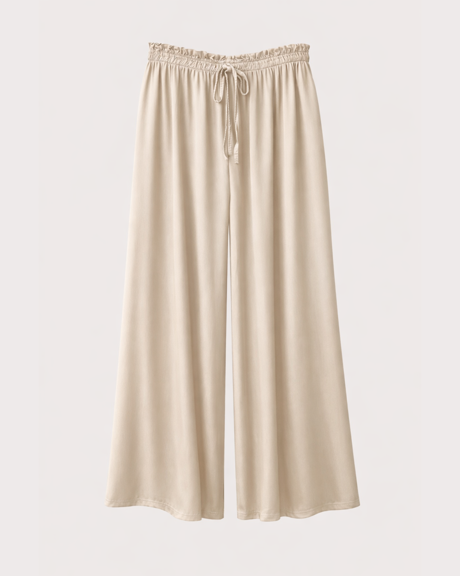 Pantalón palazzo de tejido raso satinado, con caída fluida y acabado brillante que aporta un toque elegante. Cintura elástica con cordón ajustable para mayor comodidad y ajuste favorecedor. ✨