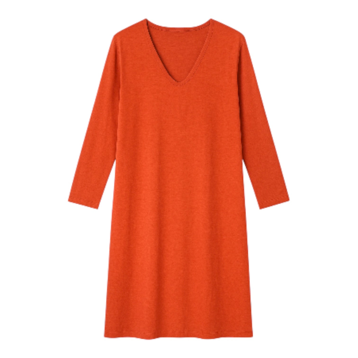 El Vestido Punto Cuello Pico es una prenda versátil y cómoda que realza la silueta con un toque relajado.