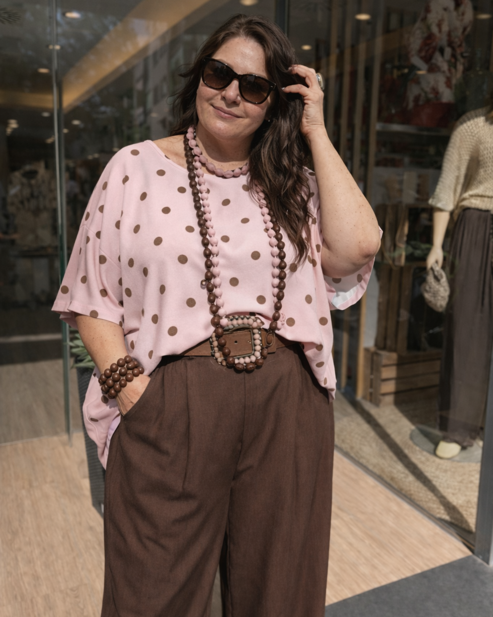 Camisetas cómodas y estilosas con estampado de lunares en la parte superior y bajo liso en un solo color que combina perfecto ✨ Corte suelto que favorece y tejido ligero, ideales para el día a día con un toque diferente 💕.