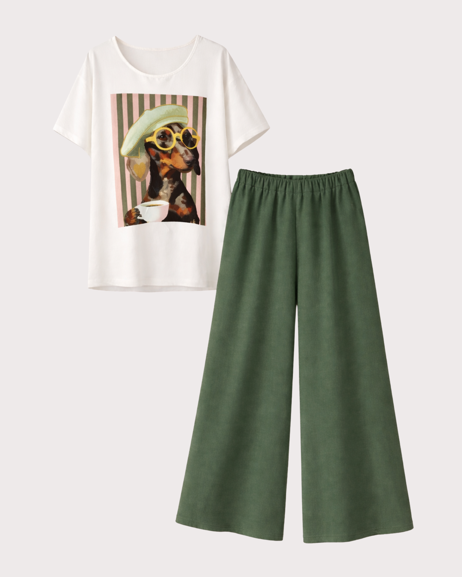 Conjunto casual con esencia artística que combina comodidad y estilo. Su diseño evoca elegancia y frescura, ideal para el día a día con un toque chic y sofisticado. 💫