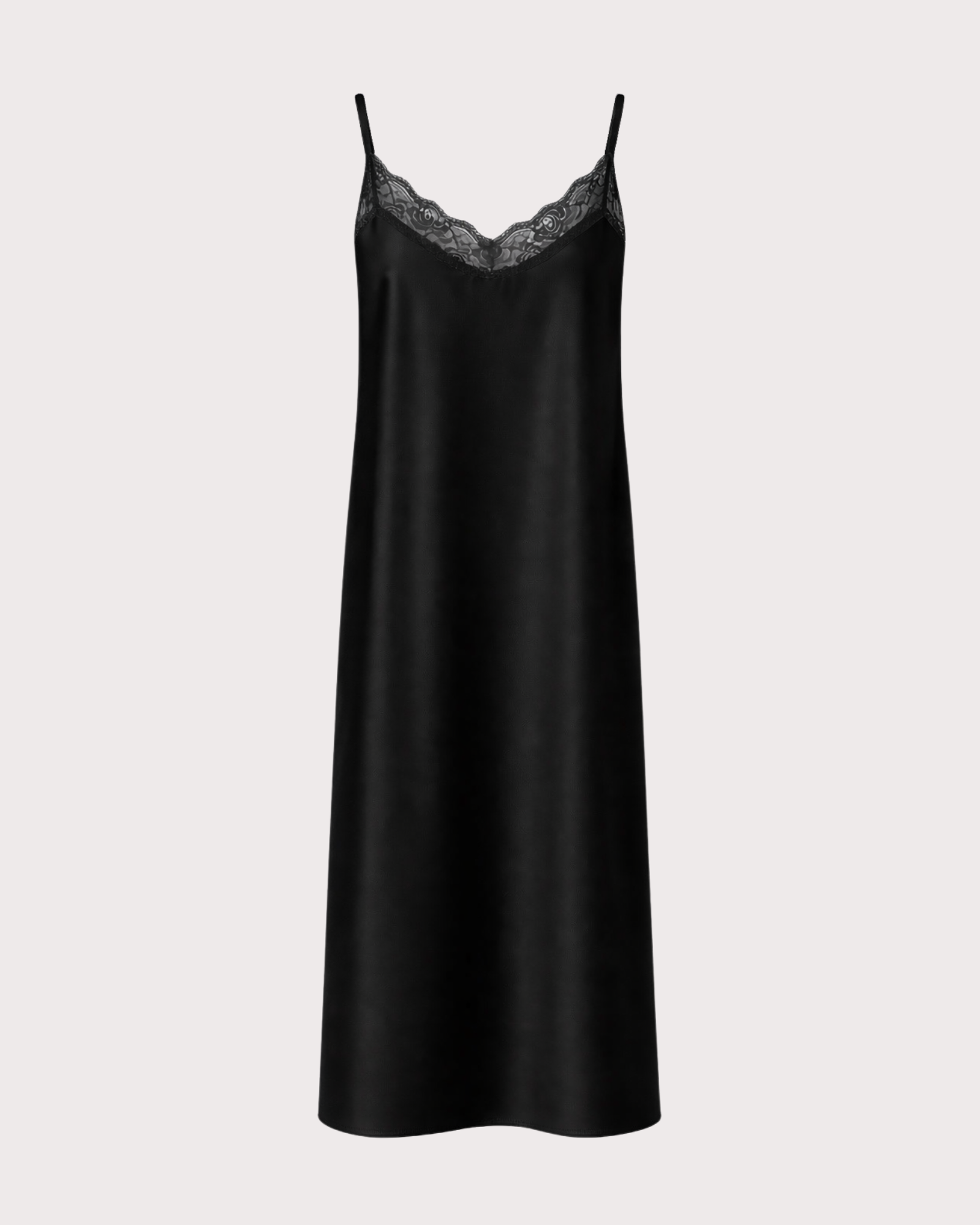 Vestido satinado de corte recto con delicado encaje en el escote, elegante y ligero 💫